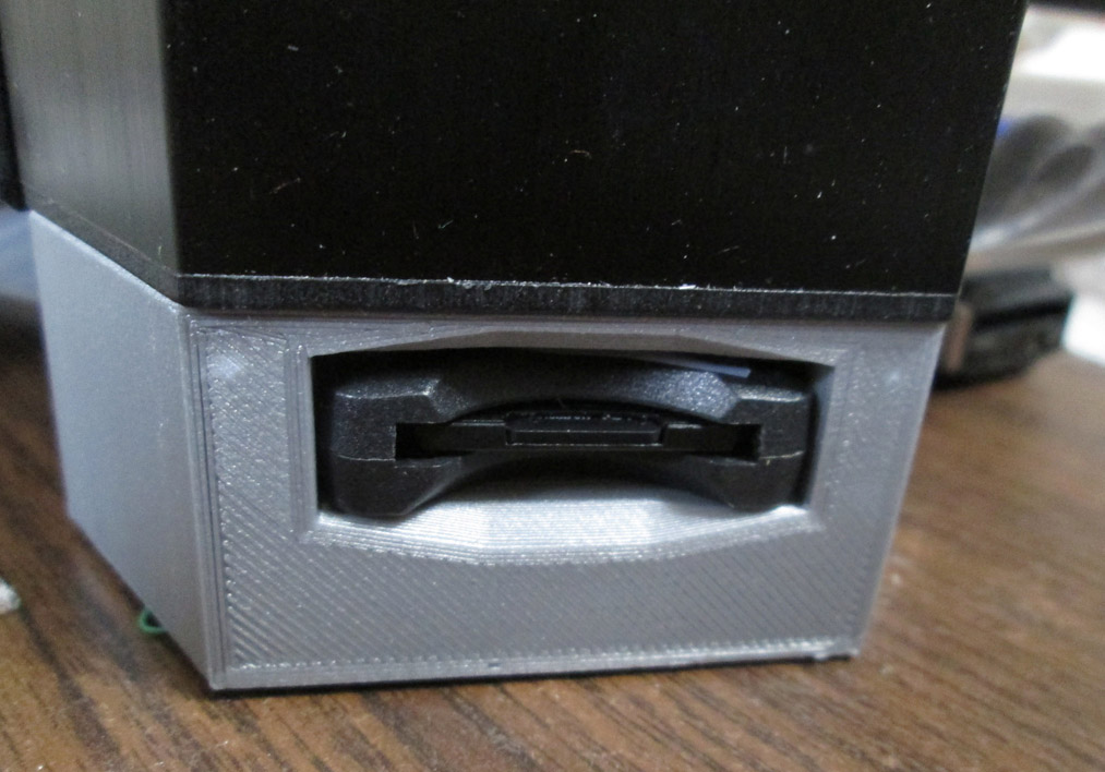 I had found a set of 'legs' to raise the printer up some and provide a spot to put the SD card holder/extension. They had a test sizing part (how did they know?) and I found that 101% would do the trick with the new gcode prefix provided from a wiki link. A little stringing but it will be OK. Have to wait for the cable now.