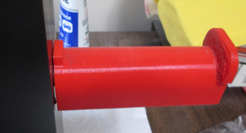 Next on the useful list was an unexpected surprise. My friend Dave has an HP 2200 laserjet printer that the manual tray door won't stay closed on. It's a common problem and you can't buy (for a reasonable price) a replacement door because they have all broken. I figured it was worth a shot to search Thingiverse just in case and was pleasantly surprised that someone actually had developed a solution for this problem. It's a tiny part that wedges in the side of the door and provides a new way to keep the printer closed. It was a 5 minute print and I used a piece of the PolyLite Red that had broken off on an earlier print. I only had about 30 cm available but it was enough (it's a tiny part). It's working perfectly!